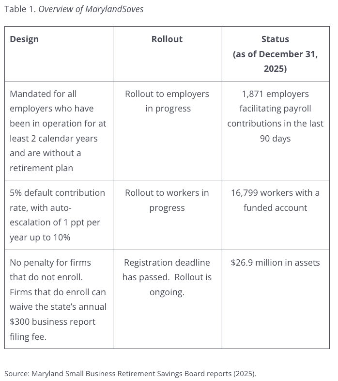 I researched and drafted a fact sheet highlighting the key elements of MarylandSaves. This publication is widely used by policymakers, government staff, academics, and students.